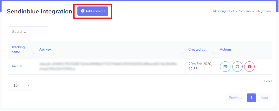Click the Add Account button. A popup window will appear to put API key and Tracking Name. Please provide your Sendinblue account API key and also give a name so that you can recognize it later.