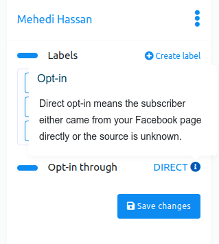 Well, in the opt-in through option, you can see whether the subscriber has come directly through the Facebook page or the source is unknown. If you see the word Direct beside the opt-in through, you know that the user has come through the Facebook page or the Instagram account directly.
